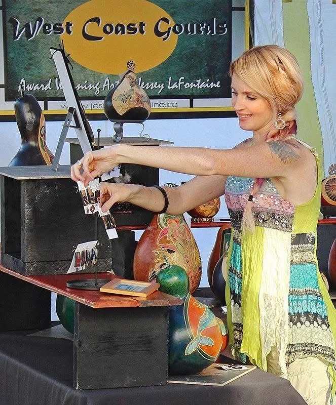 Jessey's art has been showcased throughout Vancouver Island, and her unique blend of gourd art and silversmithing continues to captivate audiences with its raw, earthy charm .